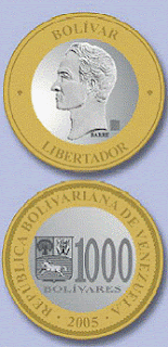 Hace unos días el Banco Central de Venezuela publicó en prensa nacional un comunicado sobre la primera emisión de monedas de 1000 Bs (nota completa). Unas monedas muy bonitas, parecidas a las de 2 euros, y a otras tantas monedas, hechas de cobre, níquel bronce y aluminio: